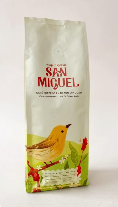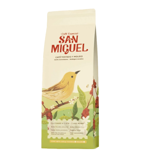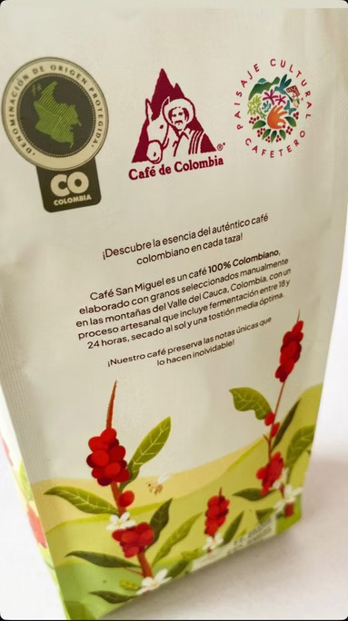 Café San Miguel es 100% colombiano elaborado con granos seleccionados manualmente en las montañas del Valle del Cauca, Colombia, con un proceso artesanal que incluye fermentación entre 18 y 24 horas, secado al sol y una tostión media optima.